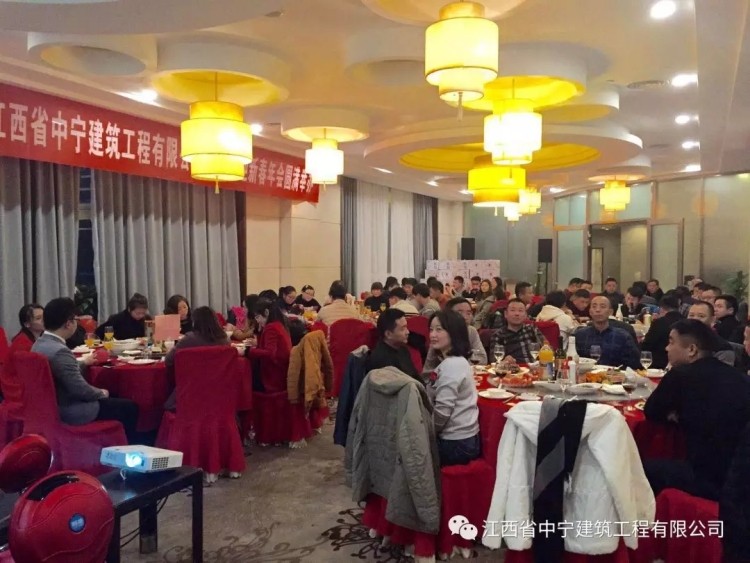 年會晚宴上全體同仁為新的一年舉杯同慶,共同祝愿中寧建筑公司的明天會更好!”