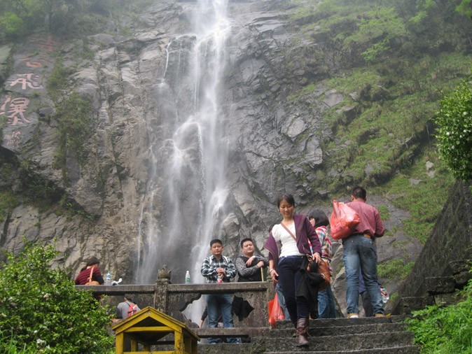 到達(dá)明月山,大家都迫不及待的下車(chē)。一下車(chē),高高的明月山聳立在眼前,像是站在巨人的腳底下,感覺(jué)自己非常非常的渺小,比夢(mèng)中想象的還要雄偉、高大。“莫急、莫急,大家先合個(gè)影”只聽(tīng)見(jiàn)行政部付迎的呼聲,還好,此時(shí)正是大家對(duì)明月山驚訝的時(shí)候,沒(méi)有大家說(shuō)話(huà)的聲音。不然,平時(shí)小聲小氣的付迎,是沒(méi)有辦法讓大家都能聽(tīng)得見(jiàn)她的聲音的。