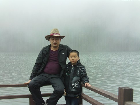 終于,在3個(gè)半小時(shí)汗水與霧水洗禮的漫長(zhǎng)期待里,我們踏上了明月山的山頂。可能,大家都會(huì)一直在問(wèn),我們的先鋒官呢?在照片的影集里一直沒(méi)有看到他的身影,確切的說(shuō),應(yīng)該是他們的。這是后來(lái)我才知道的。我本以為我們的先鋒官--蔡文斌是一個(gè)人爬上山的,哪知,他還帶上了他沒(méi)坐纜車(chē)的兒子,在我們往山頂攀爬的時(shí)候,他們?cè)缫言谏巾數(shù)群蛭覀兌鄷r(shí)了。